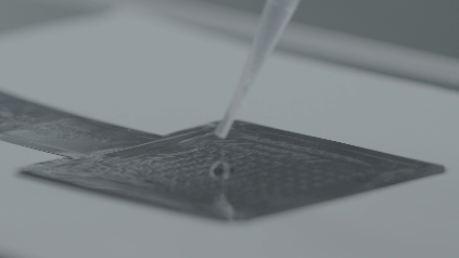 第三,突破量产瓶颈:我们已实现中试级别薄膜压力传感器的量产。微结构对于离电式薄膜压力传感器灵敏度的二次提升具有重要的意义,传统离电传感器微结构加工使用光刻技术,类似于传统的微雕工艺,成本高昂,悟通自研了‘材料自组装术’,让材料像冰晶形成雪花般自发生成微结构,省去刻蚀、模具倒模等复杂工艺环节,大幅降低了高性能薄膜压力传感器的生产成本。”